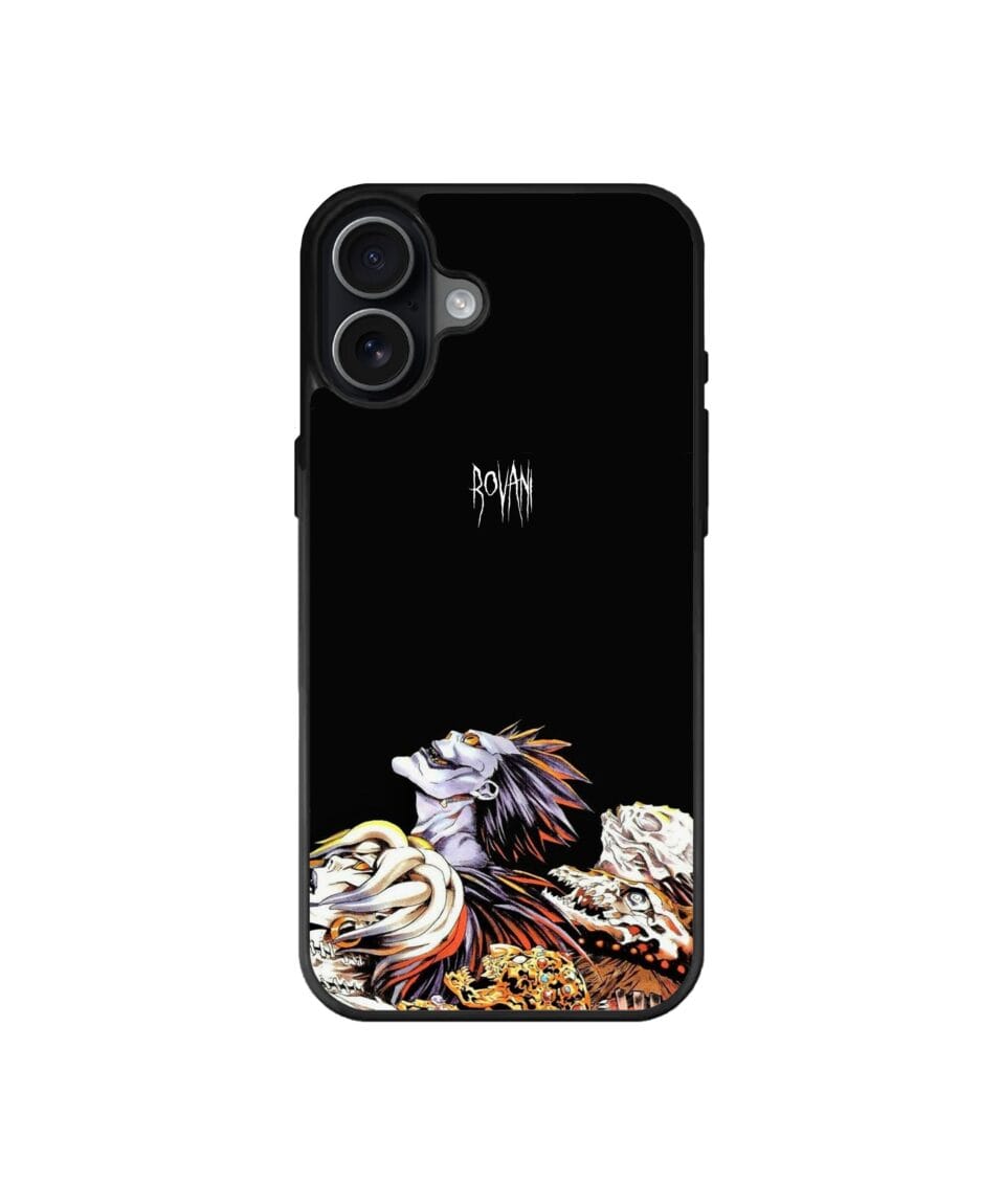 Ако си фен на легендарната манга и аниме поредица „Тетрадката на смъртта“, този калъф е създаден точно за теб. Централният елемент е детайлното изображение на Рюк (Ryuk) – любимият на всички Шинигами, който обожава ябълки и игри с човешката съдба.